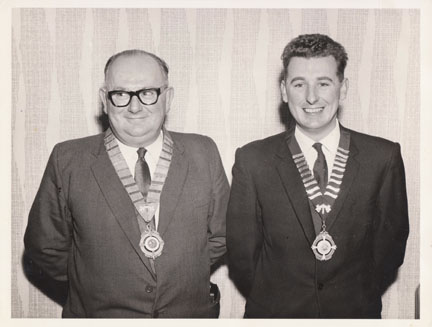 Theodore Hart served on all committees of the National Federation of Fishmongers before becoming its national presdident for a period of two years from 1963 - 1965. He will be particularly remembered for his major contributions to organising and running the NFFs craftsmanship competition for 15 years. In this picture he is stood with my grandfather Brian Hart who was president of the local branch at the time.